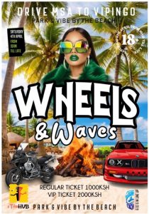 Description: Drive to Vipingo and vibe by the beach! Wheels & Waves is happening Saturday 4th April from 10AM till late. Regular KSh 1,000 | VIP KSh 2,000. 18+ only.